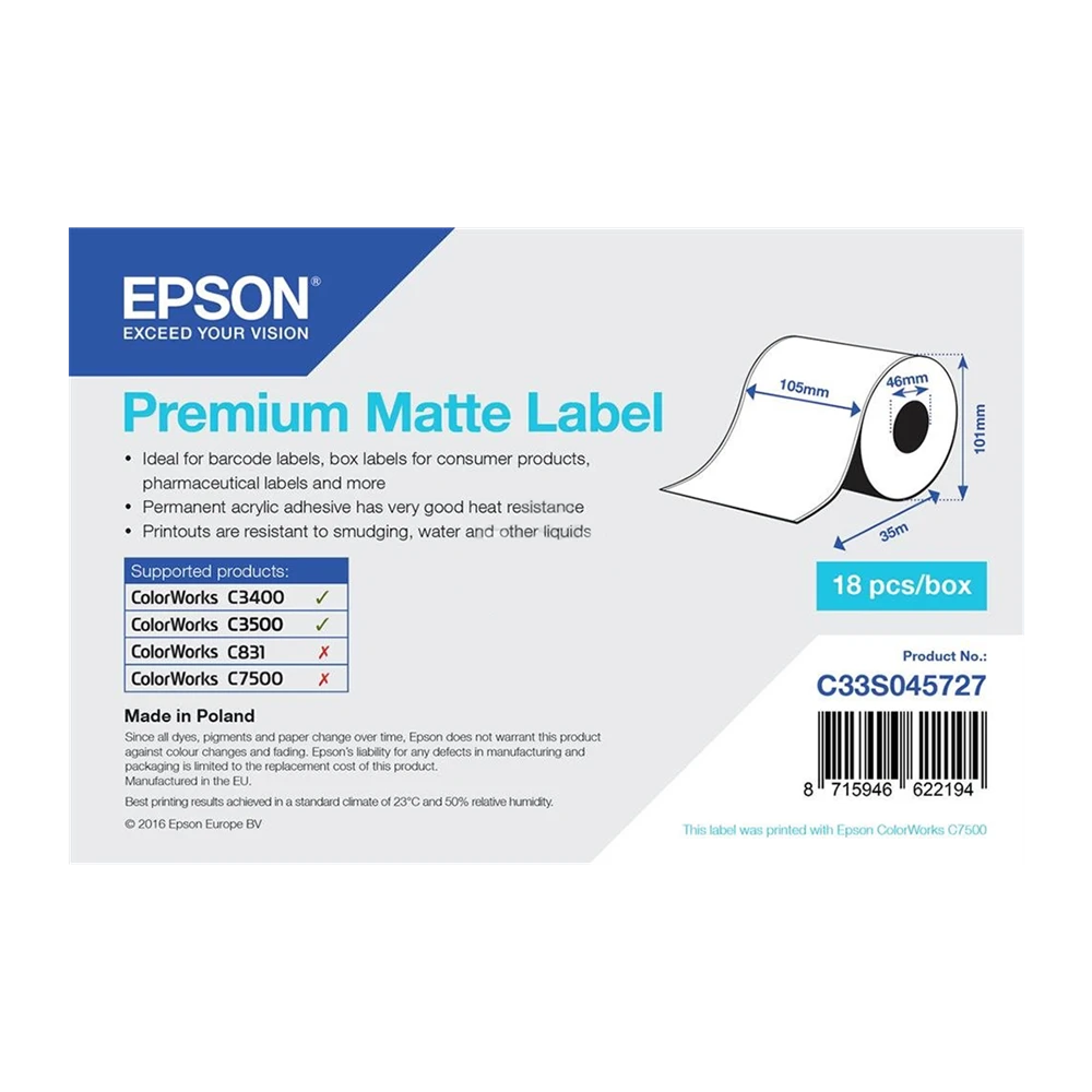 Prémium matt bevonatú, InkJet (tintasugaras) simított öntapadós etikett címkékhez a gyártó kiváló tapadású, UV stabil, általános acryl ragasztót párosított, ami alkalmassá teszi a címkét beltéri és kültéri felhasználásra -20 és 80 C°-os hőmérsékleti tartományban (felragasztási min. hőmérséklet 5 C°). A prémium matt papír etikett címke alapanyagnak és a DURABrite Ultra pigment tintának köszönhetően, élénk színű, fotó minőségű nyomat készül, mely azonnal szárad nagy sebességű nyomtatás esetén is és ellenáll a nedvességnek és hőnek. Ajánljuk termék csomagolásához, ár és vonalkód etikettekhez, valamint csomag/doboz és EU energetikai címkézéshez.