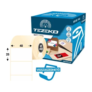 | 40*25 mm-es, Papír alapanyagú etikett címke, Visszaszedhető ragasztóval. Címke alakja: Négyzetes forma Belső magátmérő: 40 mm, külső tekercs átmérő: <125 mm, egy tekercs 2800 etikett címkét tartalmaz. Címke működési hőmérséklete: -30°C - +70°C között, Címke felragasztási hőmérséklete: -10°C Az etikett címke nyomtatásához Tezeko WAX festékszalagot ajánlunk. | |