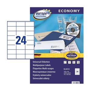 Avery Zweckform 70*36 mm-es, Papír alapanyagú öntapadós íves etikett címke, Normál ragasztóval. Címke alakja: Négyzetes forma, Címke színe: Fehér, egy ív 24 címkét tartalmaz, egy doboz tartalma 2400 etikett címke. Címke működési hőmérséklete: -20 C° - +100 C° között, Címke felragasztási hőmérséklete: 5 C° |