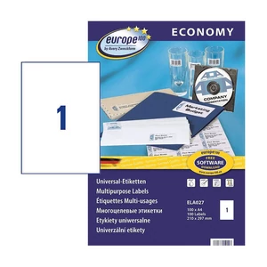 Avery Zweckform 210*297 mm-es, Papír alapanyagú öntapadós íves etikett címke, Normál ragasztóval. Címke alakja: Négyzetes forma, Címke színe: Fehér, egy ív 1 címkét tartalmaz, egy doboz tartalma 100 etikett címke. Címke működési hőmérséklete: -20 C° - +100 C° között, Címke felragasztási hőmérséklete: 5 C° |