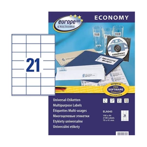 Avery Zweckform 70*41 mm-es, Papír alapanyagú öntapadós íves etikett címke, Normál ragasztóval. Címke alakja: Négyzetes forma, Címke színe: Fehér, egy ív 21 címkét tartalmaz, egy doboz tartalma 2100 etikett címke. Címke működési hőmérséklete: -20 C° - +100 C° között, Címke felragasztási hőmérséklete: 5 C° |