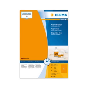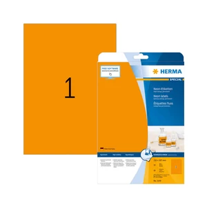 Herma 210*297 mm-es, Papír alapanyagú öntapadós íves etikett címke, Normál ragasztóval. Címke alakja: Négyzetes forma, Címke színe: Neonnarancs, egy ív 1 címkét tartalmaz, egy doboz tartalma 20 etikett címke. Címke működési hőmérséklete: -20 C° - +80 C° között, Címke felragasztási hőmérséklete: 5 C° |