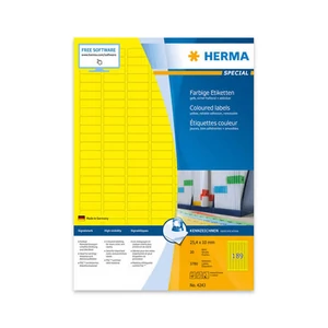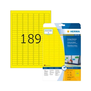 Herma 25.4*10 mm-es, Papír alapanyagú öntapadós íves etikett címke, Visszaszedhető ragasztóval. Címke alakja: Négyzetes forma, Címke színe: Sárga, egy ív 189 címkét tartalmaz, egy doboz tartalma 378 etikett címke. Címke működési hőmérséklete: -20 C° - +80 C° között, Címke felragasztási hőmérséklete: 5 C° |