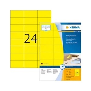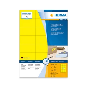 Herma 70*37 mm-es, Papír alapanyagú öntapadós íves etikett címke, Normál ragasztóval. Címke alakja: Négyzetes forma, Címke színe: Sárga, egy ív 24 címkét tartalmaz, egy doboz tartalma 2400 etikett címke. Címke működési hőmérséklete: -20 C° - +80 C° között, Címke felragasztási hőmérséklete: 5 C° |