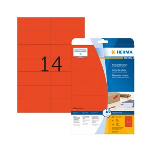 Herma 105*42.3 mm-es, Papír alapanyagú öntapadós íves etikett címke, Visszaszedhető ragasztóval. Címke alakja: Négyzetes forma, Címke színe: Piros, egy ív 14 címkét tartalmaz, egy doboz tartalma 280 etikett címke. Címke működési hőmérséklete: -20 C° - +80 C° között, Címke felragasztási hőmérséklete: 5 C° |