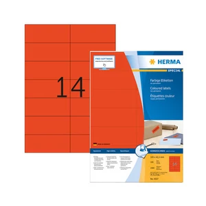 Herma 105*42.3 mm-es, Papír alapanyagú öntapadós íves etikett címke, Normál ragasztóval. Címke alakja: Négyzetes forma, Címke színe: Piros, egy ív 14 címkét tartalmaz, egy doboz tartalma 1400 etikett címke. Címke működési hőmérséklete: -20 C° - +80 C° között, Címke felragasztási hőmérséklete: 5 C° |