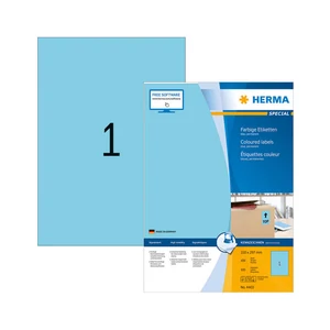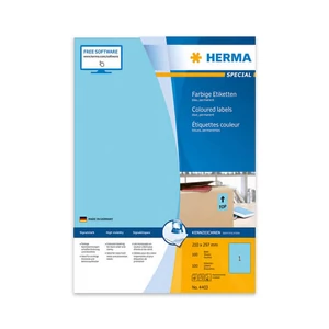 Herma 210*297 mm-es, Papír alapanyagú öntapadós íves etikett címke, Normál ragasztóval. Címke alakja: Négyzetes forma, Címke színe: Kék, egy ív 1 címkét tartalmaz, egy doboz tartalma 100 etikett címke. Címke működési hőmérséklete: -20 C° - +80 C° között, Címke felragasztási hőmérséklete: 5 C° |