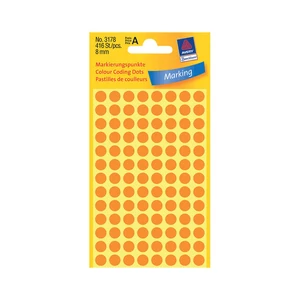 | Az Avery Zweckform 8mm átmérőjű, Neonnarancs színű jelölőcímkéi általános célú papír alapanyagból, Normál ragasztóval készülnek. Tökéletes megoldást jelentenek azonosításhoz, jelöléshez (ESD jelölő) raktározásnál és gyártásnál. A jelölőcímkék nem nyomtathatóak és nem fénymásolhatóak, kizárólag kézzel írhatóak és helyezhetőek fel. Egy csomagban 416 öntapadó címke található. | |