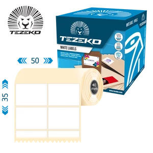 | Direkt termál alapanyagú 50 * 35 mm tekercses öntapadós etikett címke, Normál ragasztó, belső átmérő 40 mm, külső tekercsátmérő 92 mm alatt, 1000 címke/tekercs, Fehér színű nyomatlan címke Általános felhasználás, beltércímkézési feladatokra. | |
