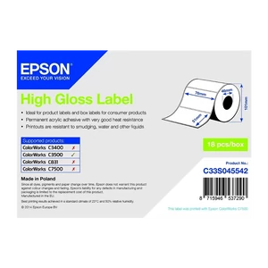 Általános címkézési feladatokra (termék-, ár-, vonalkód, doboz, EU energetikai címke, stb.), beltéri körülmények között. Kompatibilis címkenyomtató: Epson C3500, Epson C4000 |